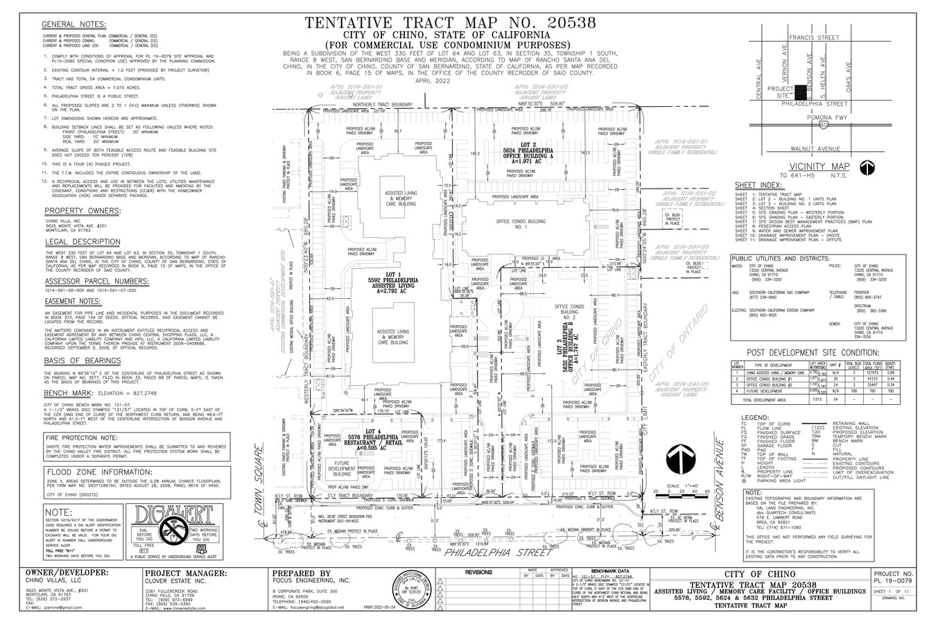 Strategically located, a brand new, comprehensive, one-stop, medical practice plaza is coming ! Complex located on a spacious 7.02-acre site. Two Medical Building #A & B located next to Assisted living & Memory care community, designed for medical clinic for professional physicians occupancy. Building #B w/ 23 units all sold in warm white-shell conditions & 90% of occupied by professional physicians. Current owners include Specialty and General physicians, Pharmacy, Dentistry, Ophthalmology, Physical Therapist, Dermatology, Audiology and more. Building #A with 30 units only have 8 units on third floor available for lease or sale . The third of four phases will be an Elder Assisted Living Community with expected completion during summer of 2026. The final phases will be a drive through free stand building, designed to be used as an urgent care center. A Must see the city of Chino's most recent modern medical center ! There will be adequate parking to accommodate patient and practice needs.