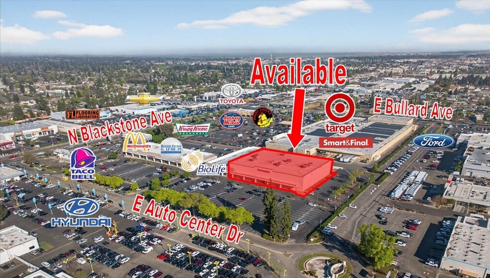 This property is well located off of the southeast corner of Blackstone & Bullard Avenues just west of Freeways 41 & 168, north of Barstow & CA-180, east of N Palm Ave. The shopping center is surrounded by many national and regional retailers, and boast high traffic counts on Blackstone Avenue and great population density. Neighboring national tenants include Ford, Cadillac, Volkswagen, Chevrolet, Big 5, FoodMaxx, Office Depot, Arco, 7-Eleven, Boston Market, AT&T, Verizon, Mor Furniture, CA DMV, Dutch Bros, Starbucks, Krispy Kreme Donuts, Banana Republic, Yosemite Falls, The Cheesecake Factory, BJ's, Huckleberry's, Wells Fargo, Marshalls, Kohls, & more.