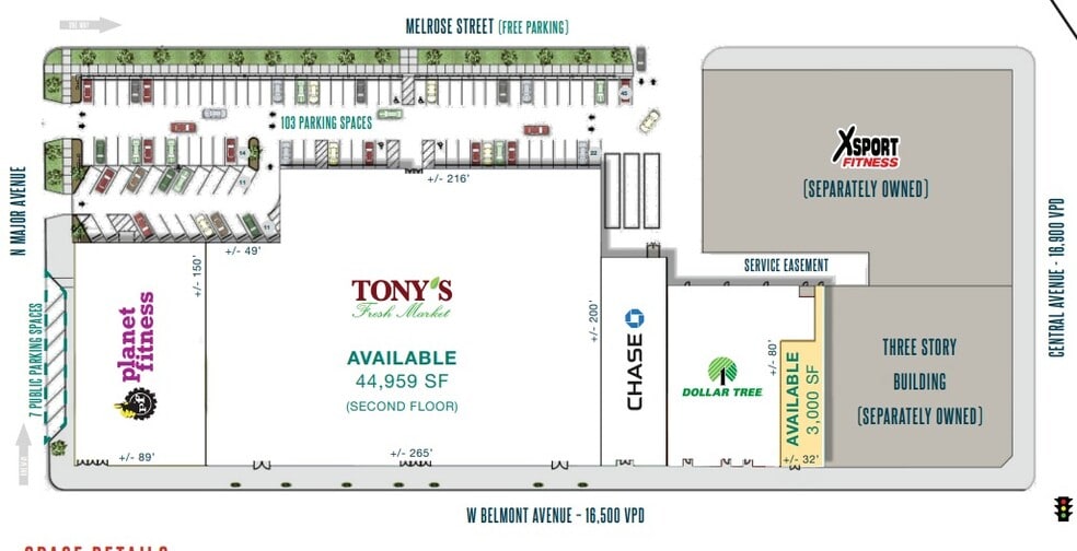 High volume Tony’s Fresh Market anchored center with excellent visibility and foot traffic along Belmont Avenue in high density Chicago neighborhood.