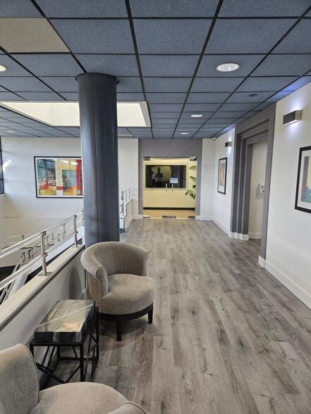 Nice 1st floor corner suite. Open reception area, server closet, storage closet, 2 windowed offices and a kitchen. Lots of windows. Newer LED lighting.