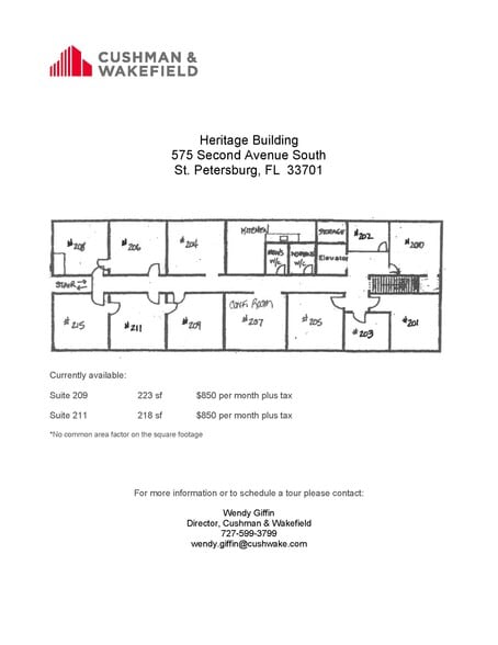 One year lease terms available Rate for 2nd floor executive suites only include utilities, janitorial service, internet service, and the free use of the building conference room and break room. First floor suites are modified gross with Tenant paying suite electrical and janitorial services. 2 story office building with executive suites on the second floor. Suites are renovated with new flooring, paint, window shading and LED lighting. Access to common areas on the second floor of the building including a conference room, bathrooms, elevator and kitchen with basic appliances. High-speed internet with Spectrum Fiber at builidng. Located in the Central Business District with many restaurants and services within walking distance Quick access to I-275 On-site tenant parking ($75/mo reserved and $65/mo unreserved) and on-site visitor parking