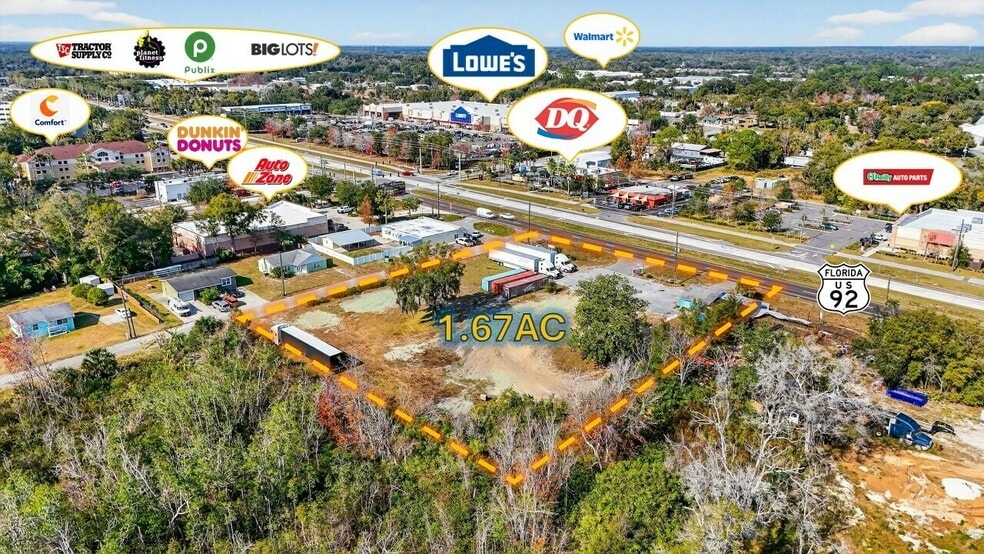 - 1.67 acre corner lot across 3 parcels on busy International Speedway Blvd (US-92) in Deland, FL - close proximity to many national retailers - C-2 Zoning allows a wide variety of uses - 28,000 VPD - 1,200sf masonry building can be repurposed or demolished for new development