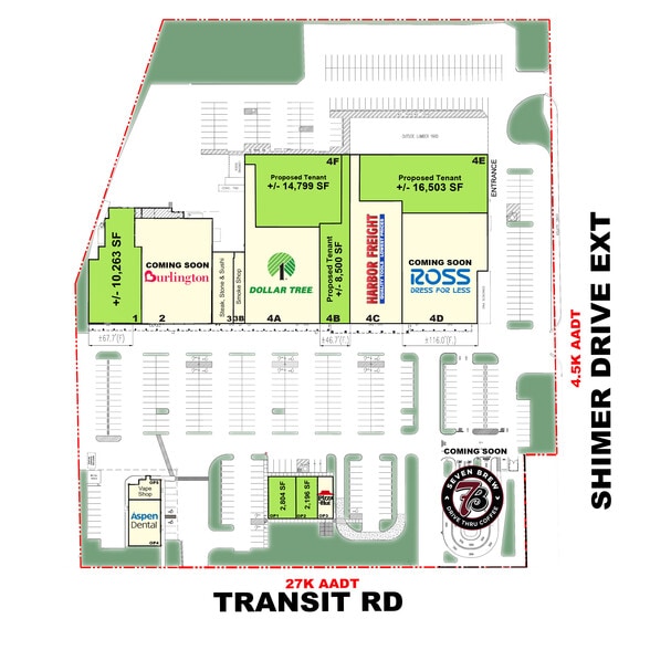 | Total Space Available | 55,045 SF | Frontage | 699’ on Transit Rd |