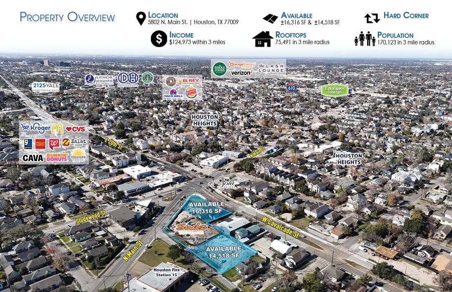 - Ground Lease: ±16,316 SF Hard Corner & ±14,518 SF