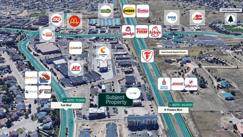 Bang Realty is pleased to present the exclusive listing for a NVA located at 5886 Tutt Blvd, Colorado Springs, CO 80923. The site consists of roughly 12,000 rentable square feet of building space on an estimated 2.5-acre parcel of land. This NVA was subject to a 5-year Double Net (NN) lease, which commenced 7/14/2021. It was extended for 8 more years in April, bringing expiry to 7/14/2034 (8.9 Yrs Remaining). The current annual rent is $172,956 and has scheduled increases of 2.75% annually.