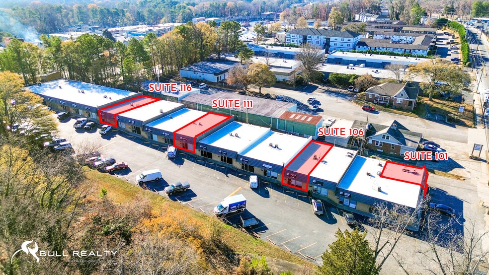 - Doraville, in a high-traffic Northeast Atlanta corridor with excellent connectivity - Businesses seeking smaller, efficient spaces suitable for industrial flex and retail operations - Located minutes from I-285 and I-85 - Adjacent to the proposed ±13-acre Town Center redevelopment - Directly across from the Doraville MARTA Station - Near Assembly Studios - Excellent visibility - Strong potential for foot and vehicle traffic - Easy access to major transportation routes - Ideal for compact industrial or retail users seeking high visibility and connectivity Industrial Flex Suites: - Three suites, each approximately ±1,200 SF - Combination of office and warehouse space - Shallow bay construction - Drive-in doors for easy access - Suitable for light manufacturing, distribution, or service-oriented businesses - Designed for users needing functional industrial space in a compact footprint Retail Suite: - One suite of approximately ±600 SF - Prominent street frontage on New Peachtree Road - Signage opportunities - Ideal for boutique retail, service businesses, or small office users seeking high visibility