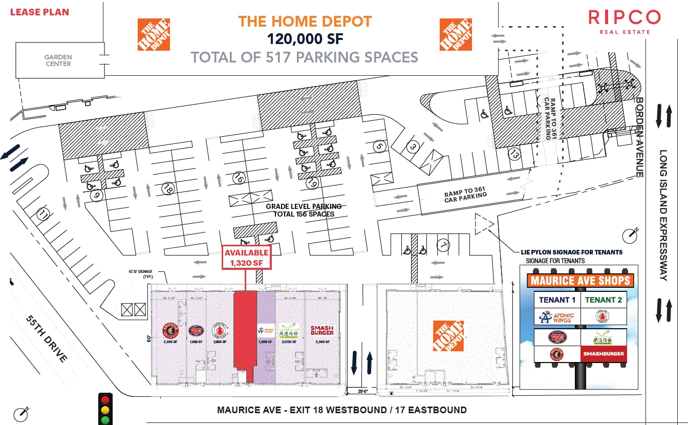 Newly constructed shopping centered anchored by Home Depot, Chipotle, Smashburger, Jersey Mikes, Teriyaki One, Fay Da Bakery. Right off the LIE on Exit 18 with amazing signage opportunity (great Pylon Signage visible from the BQE). The location offers a diverse tenant mix with strong demographics in the area. All uses are welcome!