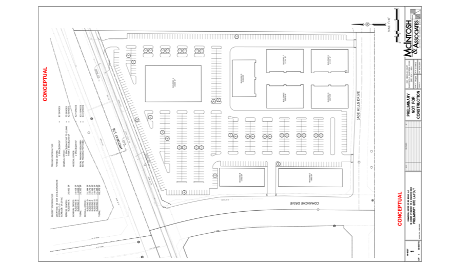 Flat, rectangular shaped corner parcel zoned MX-1, APN 387-360-05