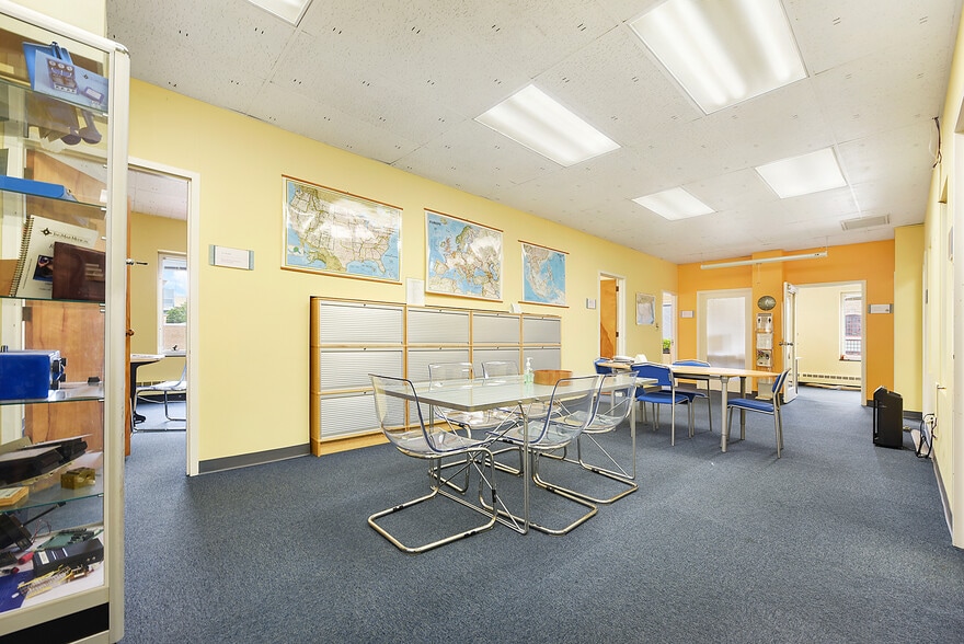 This office area is open in the middle for a meeting/co-op work space plus 8 private offices and 1 large conference room/additional office, kitchen and kitchen seating area. Natural light, welcoming yellow walls and a great layout make this a terrific office space. Secure/buzzer access on second floor, secure building entrance and elevator/stair access.