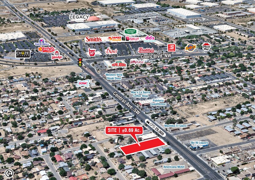 - Drive-thru permissive - Located in a growing trade area - High visibility to 29,000 cars per day - Easy access from Central Ave. - Surrounded by dense retail & residential - Fully-fenced property - Utilities at the lot line - Owner financing available - Flexible financing options IDO ZONING - MX-M - Flexible zoning allowing for most commercial uses