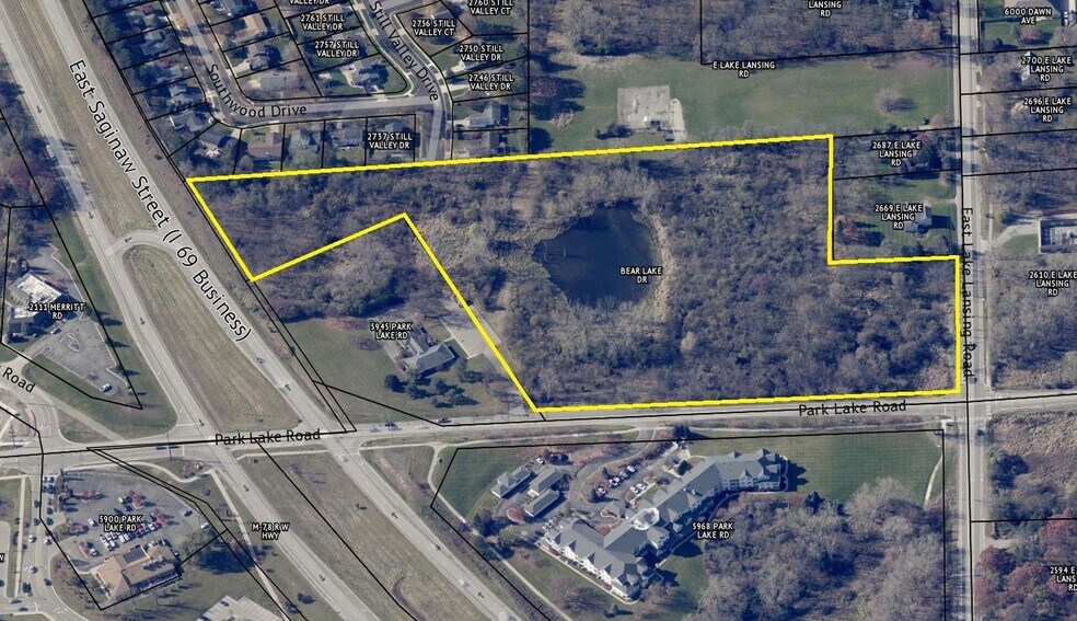 For sale: a prime 14.76-acre parcel of vacant development land at the coveted intersection of Park Lake Road and M-78 in East Lansing, MI, within Meridian Township, Ingham County. This expansive property boasts frontage on three key roads—Lake Lansing Road, Park Lake Road, and M-78—offering unparalleled visibility and access. Featuring a serene 1.3-acre pond, this site is master-planned for residential use, presenting an ideal opportunity for developers to create a thriving community. Located just minutes from Michigan State University’s bustling campus, the property is surrounded by a vibrant area with top-tier shopping, including major retailers like Meijer and Costco. With easy access to I-69 to the east and US-127 to the west, this parcel ensures seamless connectivity for future residents. Don’t miss this rare chance to shape a residential haven in one of East Lansing’s most promising locations.