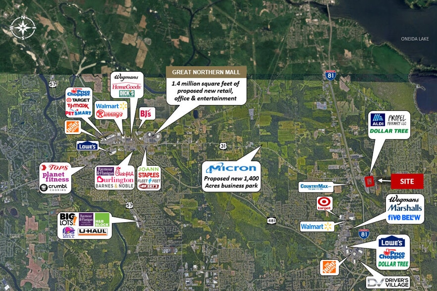 - Signalized access shared with neighboring Cicero-North Syracuse High School, walking distance from the plaza