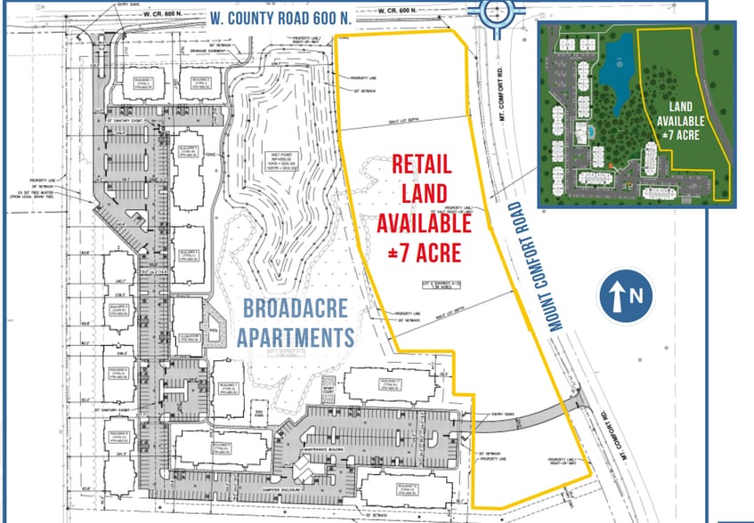Positioned at the new roundabout on the southwest corner of County Road 600 and Mount Comfort Road, this ±7-acre site. Zoned PUD, property allows for a gas station and a variety of retail, restaurant, or medical uses.