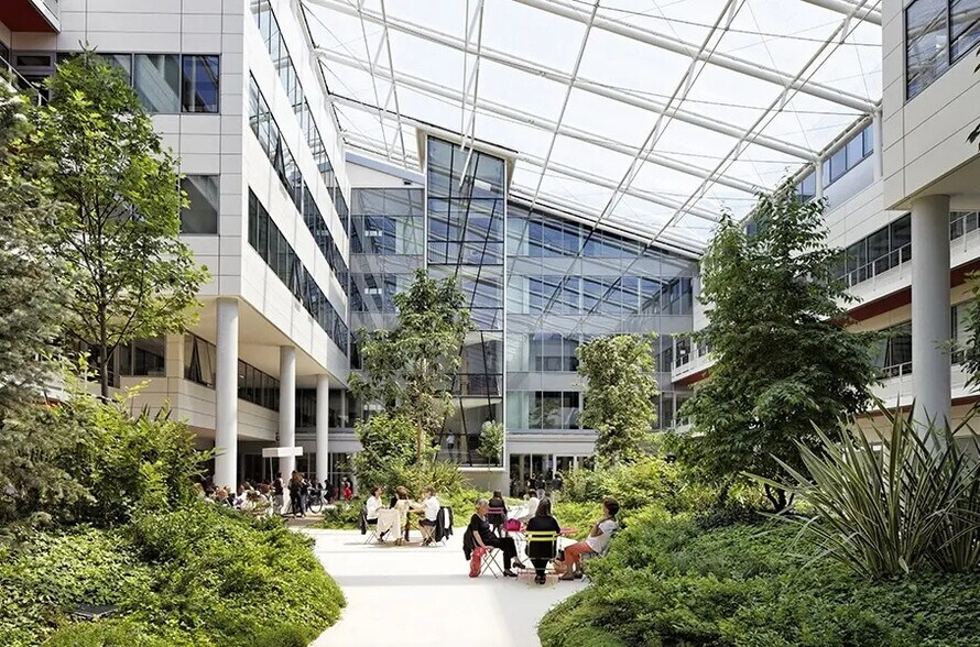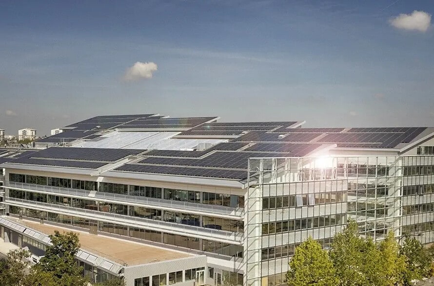 We offer office spaces for rent within SOLARIS, a brand-new Positive Energy office building located in Clamart, in the southwest Paris business district, benefiting from the scientific influence of the Saclay plateau. Greenery is omnipresent at Solaris, with the building featuring a large covered garden spanning 1,000 m², centered around an interior street that creates a microclimate and a genuine space for social interaction. SOLARIS, a Positive Energy building with HQE Excellent certification, harnesses natural resources: the sun, earth, air, and water. It boasts 3,200 m² of photovoltaic panels, uses geothermal energy for heating and cooling, distributes warmth in winter and coolness in summer through a hydraulic network, employs nighttime over-ventilation in summer to cool the building, and recycles rainwater for irrigation and cleaning. The building features highly efficient thermal insulation and airtightness, leveraging thermal inertia by eliminating raised floors and suspended ceilings to maximize absorbent surfaces (concrete). It also includes specialized acoustic treatment with suspended islands, real-time consumption monitoring, and a design that prioritizes sustainability and comfort.