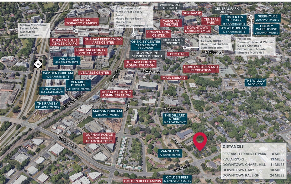 • Surrounded by new multifamily development driving Downtown Durham’s eastward expansion, with easy access to downtown and employment hubs