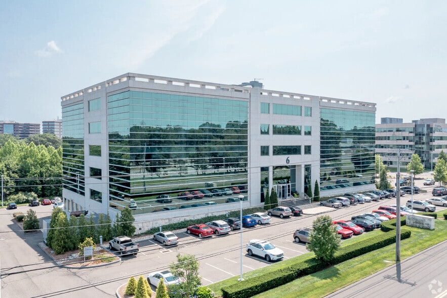 The building is located on the Merritt Parkway and Route interchange, overlooking Trap Falls Reservoir on Commerce and Research Drives. There is a VAV HVAC system with gas warm-up, fiber optics, and sonnet ring technology available. Tenants can use two 125 DT/minute 3,500-pound elevators, as well as 6 watts/square-foot electric for tenant's use. There is a full steel structure (for more flexible loading and stair penetrations). The property is decorated with original artwork, decorative carpet patterns, wall coverings, decorative lighting, and artwork in the lobbies and corridor. Extra amenities include an on-site full service cafeteria, and a running/walking trail with outdoor seating areas.