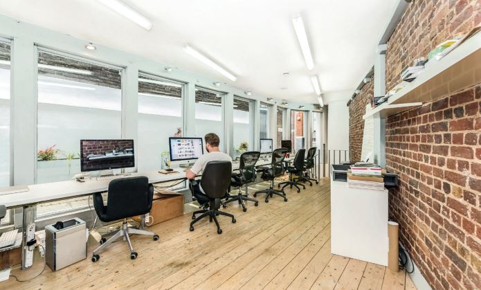 6 St John's Place provides bright characterful warehouse-style office accommodation, recently refurbished to a high standard. The Ground and Lower Ground unit has its own self-contained entrance, and a direct connection between the two floors via a spiral staircase. Service charge is inclusive of electricity, cleaning, and broadband.