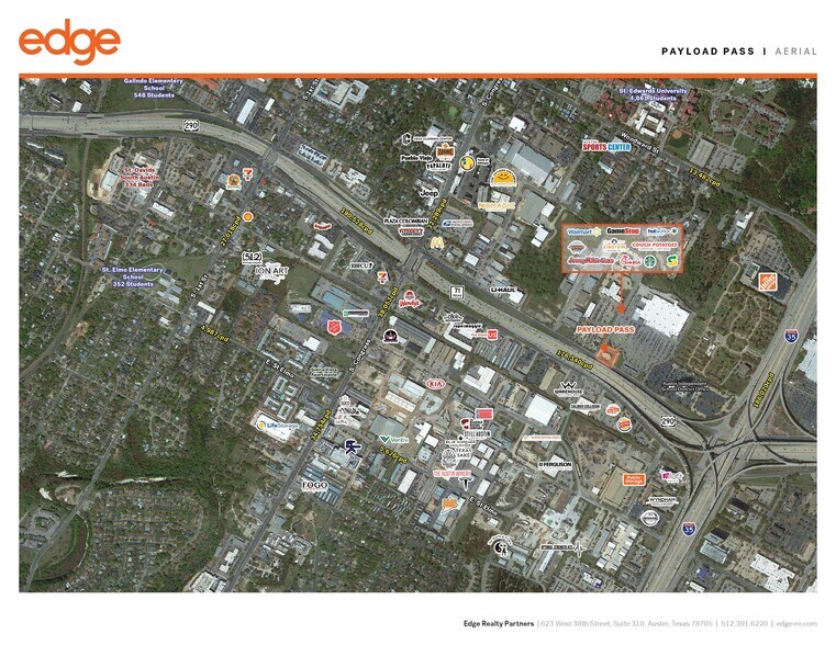 Payload Pass is located at the highway interchange of IH35 and Hwy 290 in South Austin. The property in minutes from downtown Austin and fronts the top performing Walmart in Austin. Additionally, the property features high visibility, high traffic counts and is in St. Edwards University’s backyard. South Austin is what locals like to call “a taste of old Austin.” Quaint houses, old-school boutiques, long-running vintage restaurants and new eateries by some of the city’s top up-and-comers populate this lively nook. It is the arts and culinary district with no shortage of awesome eateries, and activities. People are drawn here to explore the food, breweries, and to connect with the local culture.