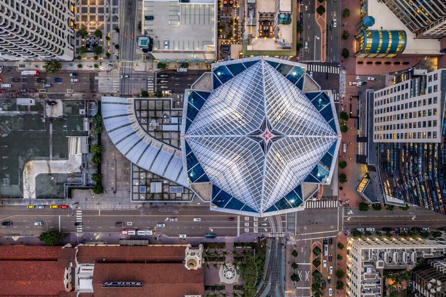 Work in Downtown San Diego! One American Plaza is located steps away from the finest restaurants, hotels, and shopping in the vibrant heart of the Downtown area. Enjoy stunning views of surrounding San Diego and the Broadway Pier from 73 well-appointed window offices or take-in a relaxing walk along the waterfront. This workspace is also moments away from major transportation.