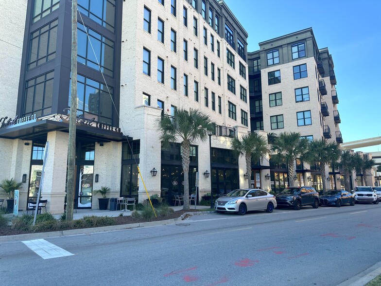 The 1,940 square foot office/retail/F&B space fronts 100 linear feet of Indian Street and is in line adjacent to Foxtail Coffee Co., on the ground floor of The Olmsted, an exciting mixed use, 163 luxury multifamily development. The space boasts incredible volume with 19’ ceilings and an abundance of natural light due to the two sets of 12’ wide x 10’ tall bi-folding glass doors (each situated below a 4’ tall transom window) and three sets of 6’ wide x 10’ tall double wood doors complete the space. Easy walking distance from SCAD, Plant Riverside and Savannah’s thriving Historical District. 2 minute walk to the new 4.5 acre Plant Riverside Development with a multitude of bars, restaurants, retail, and live entertainment, in addition to the 419 room JW Marriot Hotel. The space will also be provided with a dedicated 1,500 gallon grease trap.