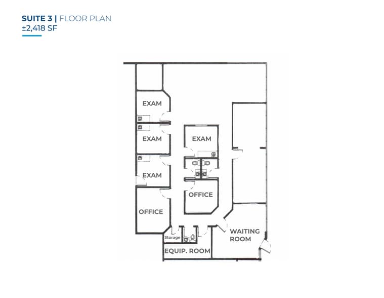 | 1st Floor, Ste Suite 3 | 2,418 SF | Negotiable | Upon Request Upon Request Upon Request Upon Request | Medical | - | Now |