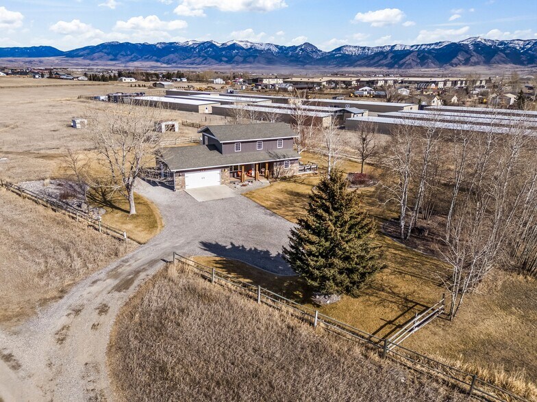The site is within minutes of Bozeman Yellowstone International Airport and the Highway 191 corridor. No HOA. Private well and septic in place. The existing structure is a two-story, three-bedroom, 2.5-bath home built in 1992 with an 800-square-foot attached two-car garage. It is currently habitable and could support owner-occupancy, a caretaker arrangement, or interim rental while a buyer evaluates longer-term use. Forced air gas heat, asphalt roof, engineered wood and tile flooring throughout most of the main level. The land is the asset. Five-plus contiguous acres this close to downtown Bozeman and the airport does not come together often. The site is flat, partially fenced, with a ditch water amenity on or touching the property. A gravel driveway and dirt/clay road access serve the parcel currently. Mountain views to the south and west. 5.22 acres. Existing 2,500 SF structure with garage. Private well and septic. No HOA or subdivision restrictions noted. 2025 property taxes: $3,624. Asking $1,350,000. Buyer to verify zoning and allowable uses with Gallatin County.