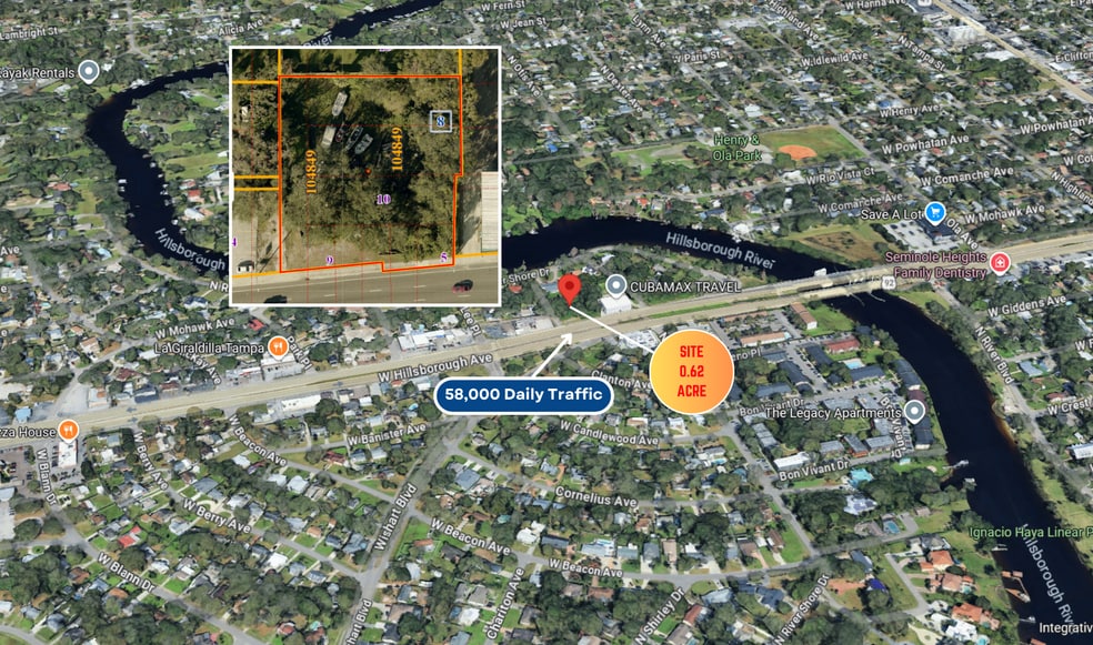 - Prime Hillsborough Ave Frontage – Located along a major Tampa corridor with approximately 58,000 Daily Traffic