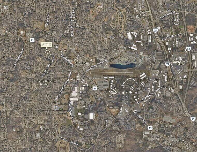CBRE is please to present the unique opportunity to purchase ±8.82 acres off Cobb Parkway NW in the City of Kennesaw. With two points of access from Pine Mountain Rd and Cobb Parkway, this site lends well to townhome development. While a zoning change is needed to develop residential product, the city has shown willingness to make this change. The site is walking distance to Smith Gilbert Gardens, Publix, and downtown Kennesaw. Kennesaw State is less than 4 miles away and stormwater detention is already on site. The constructed detention pond represents $650,000 to $1,000,000 in value to a buyer. Demolition of the existing elevator and stair shafts as well as engineering for the spring under the previously contemplated building will need to considered.