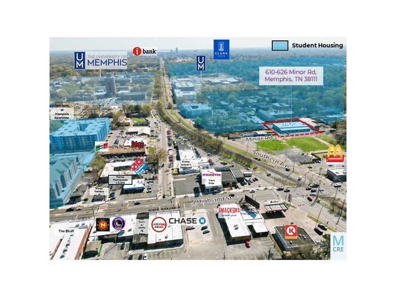 Conveniently situated, the property enjoys high visibility, strong foot traffic, and convenient access. Located just steps from the University of Memphis, it’s surrounded by a dynamic mix of restaurants, cafés, student housing, and neighborhood services — offering unmatched convenience and exposure in a walkable environment.