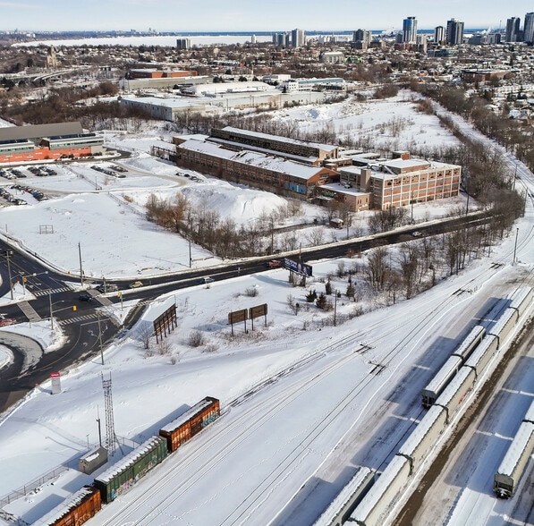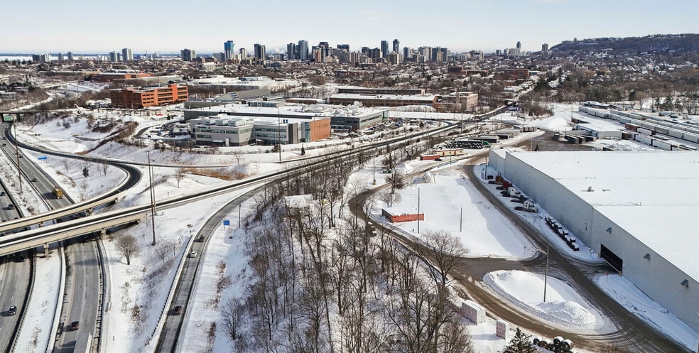 The property is a 1.28-acre land site located at 611 Aberdeen Avenue in Hamilton, Ontario. It has M4 zoning, which permits industrial uses and business park support. The site has access to Highway 403 and the QEW and currently includes two billboard installations. It lies adjacent to rail lines and is near various commercial amenities, including quick-service restaurants and financial institutions, with major roadways in immediate proximity.