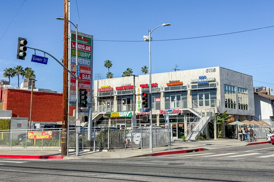 Two units available: +/- 1,320 Square Foot Ground Floor Restaurant +/- 600 Square Foot Upstairs Services/Office Space End-Cap Restaurant space is two units combined with amazing visibility and is perfect for Pizza, Sandwiches, Burgers, Coffee, Juice, Frozen Desserts, etc. The Restaurant has a grease interceptor in place, hood duct shaft plumbed through roof, water drain, and fire sprinkler system. Each unit is equipped with a 200-amp power supply (400 amps combined). Each unit has its own 3-ton A/C system, for a total of 6 tons, operating on separate thermostats. Hard corner of Santa Monica Boulevard and N. Gower Street. Tremendous signage opportunity. Outdoor seating. Excellent location with high traffic counts. On-site ground level parking for customers (2:1000 ratio). Future neighborhood highlights: There are lots of multifamily developments in progress in the immediate area.