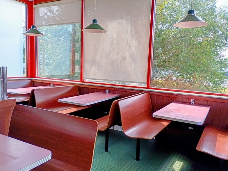 - One level building equipped with built in booths, kitchen equipment, 2 baths, walk in cooler and so much more
