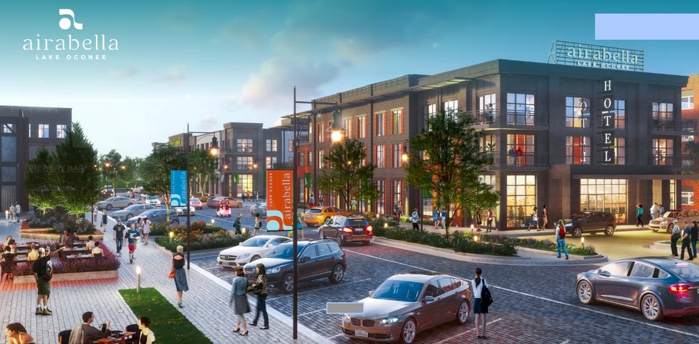 Airabella is a first-of-its-kind mixed-use development in the Lake Oconee area bringing 118,873 SF of retail, a hotel, townhomes, single family homes, a 9-hole golf course, retail, and restaurants. At a prime, central location at the entrance of Reynolds Lake Oconee, a 12,000 AC development with 5,660 existing homes (plus additional 4,750 planned), six championship golf courses, and the Ritz-Carlton hotel Airabella: The combination of the words Aira, meaning “of the wind,” and Bella, which means “beautiful,” describe the essence of a new community where something wondrous is in the air. + Miles of walking trails and lively green spaces + Year round events on the boulevard + Adjacent to one of the top performing Publix stores in GA, with 1.1M annual visitors