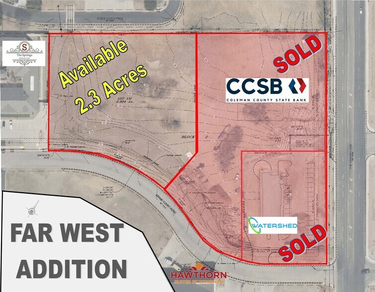 2.3 Acres located along the North side of Grand Court Drive, bordering the West side of the Watershed car wash and new Coleman County Bank, the East border of Spring Memory Care Facility and directly across from Hawthorne Suites. General Commercial