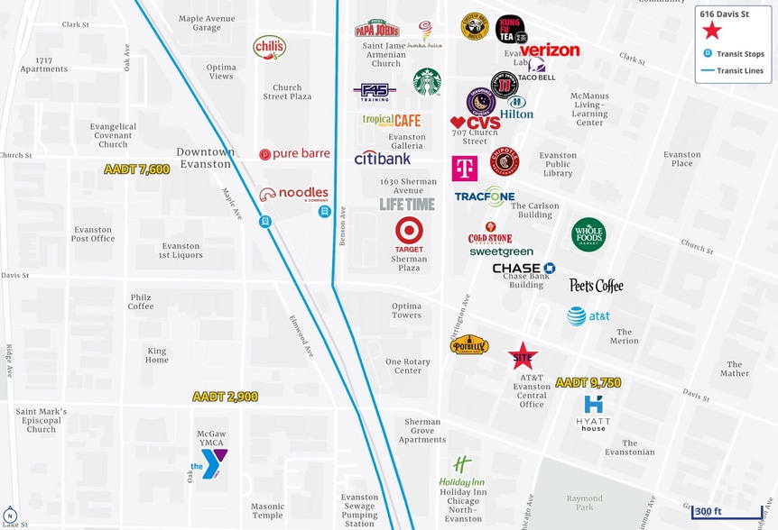 Select Tenants at 616 Davis St, Evanston, IL 60201