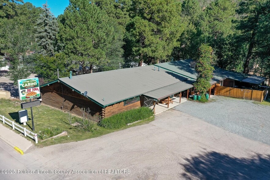 Exceptional Income-Producing Property on the Rio Ruidoso! Discover a rare investment opportunity on over 1.5 acres, perfectly positioned along the scenic Rio Ruidoso in the heart to Ruidoso,yet unaffected by floodwaters. This unique property is designed for multiple streams of income, offering a variety of accommodations and amenities that appeal to both short- and long-term tenants. Retail Space/Commercial Kitchen - Ideal for generating additional revenue or serving as a welcome/management office; Pie Kitchen with display case & Woodfire pizza oven, and great space for retail/parties Owner/Manager's Quarters - Spacious living area with 2 bedrooms and 2 baths, perfectly suited for on-site management or as a comfortable owner's residence. 10 One-Bedroom Cabins - Each with a full bath ideal for extended stays. 12 Studio Cabins - Equipped with kitchenettes, providing cozy accommodations with added convenience. 3 Site-Built Cabins - Added character for year-round rentals. 3 RV Pads - Expanding income potential for travelers seeking convenient camping locations close to conveniences. 7 Storage Units -Rent out for additional cash flow. Party Pavilion - Perfect for guest gatherings, events, or community use. Over 1.5 acres of land, unaffected by flood or fire. Backside of the property runs along the beautiful Rio Ruidoso, offering a serene natural setting. Diverse rental options ensure steady occupancy and consistent revenue streams. This property combines natural beauty, versatility, and strong income potential ideal for investors, operators, or those seeking to live on-site while running a thriving hospitality business.