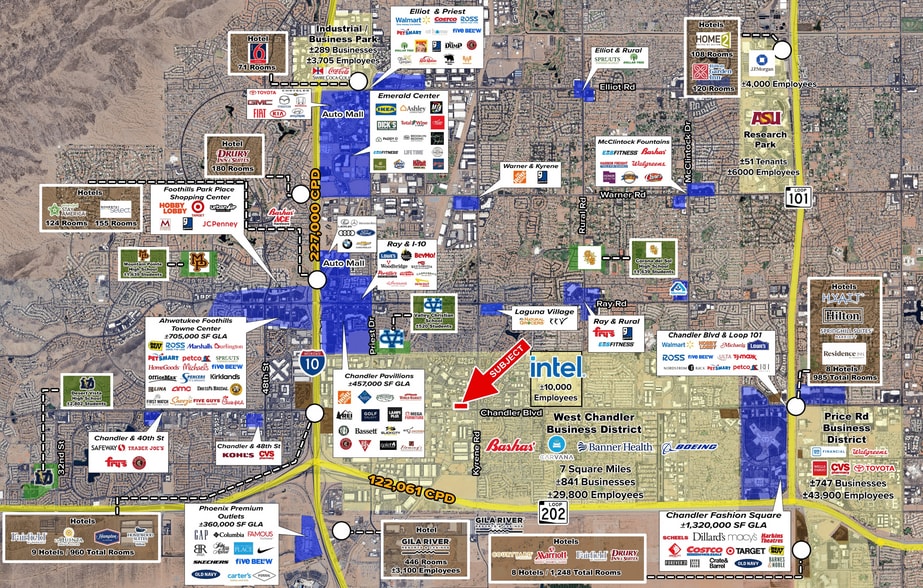Frontage along Chandler Blvd with 30,730 CPD and direct access to the West Chandler Business Corridor. Located 1.3 miles from I-10 and 3.1 miles from Loop 101, both with Chandler Blvd interchanges.