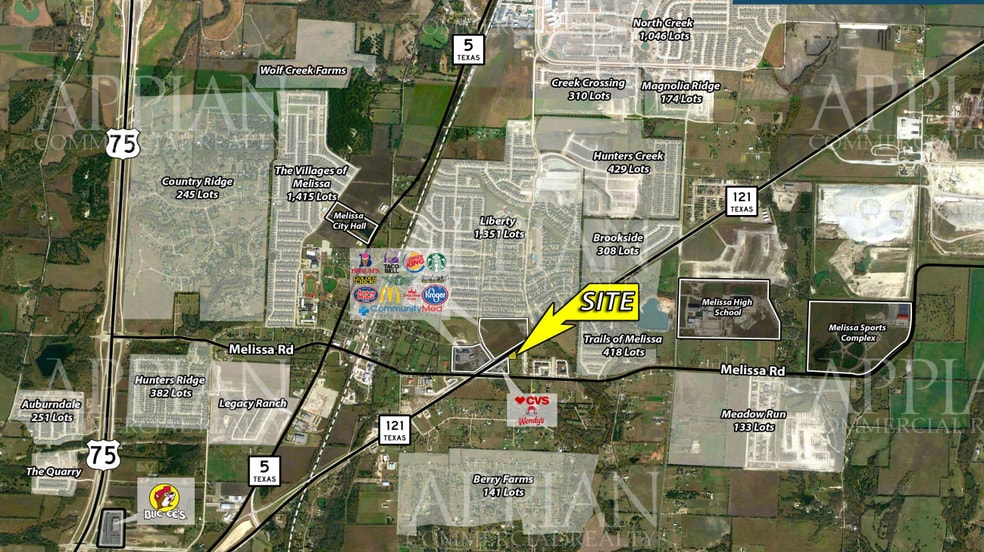 This ±15,030 SF parcel fronts Highway 121 in the City of Melissa, positioned within a rapidly developing corridor of North Texas. The site benefits from strong visibility, direct frontage along a major thoroughfare, and convenient access to surrounding residential and commercial growth. The property offers significant upside individually, with enhanced development potential when paired with the adjacent approximately 3.67-acre tract that is also available for sale. Together, the sites present a compelling assemblage opportunity for a larger, more flexible development footprint. With continued expansion of housing, retail, and employment uses in the surrounding area, the property is well-suited for long-term redevelopment or investment. Its frontage on Highway 121 and proximity to ongoing development support a range of future uses, subject to buyer objectives and applicable zoning.