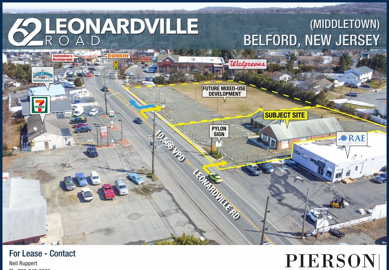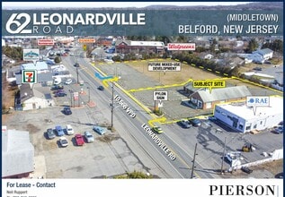 Former bank building located in the Downtown Belford section of Middletown surrounded by national and local retailers, restaurants and several schools. Property boasts a pylon sign as well as full access from Leonardville Road (+/- 10,566 VPD). Solid surrounding demographics. Adjacent lot is being redeveloped into a mixed-use property that will feature public works space and residential apartments.