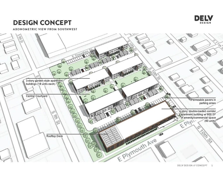 Lease Rate: $12.00 - $14.00 PSF NNN. This 136-unit multi-family property is set to begin pre-leasing in Spring 2026. Retail space is located on the ground floor.