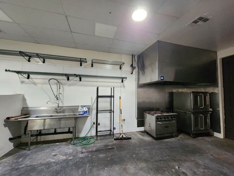 Existing commercial commissary kitchen. Ideal for catering, coffee roasting, ice cream making, bakery, cloud kitchen. Built with Permits. -Hood -Gas range, -Grease trap, -Walk in freezer, -Ample storage space, -Three (3) Three Compartment Sink Stations, -Prep Sink, Floor Sinks, Floor Drains -ADA Restroom -2 dedicated parking spaces & easy street parking -Potential to add a roll up door