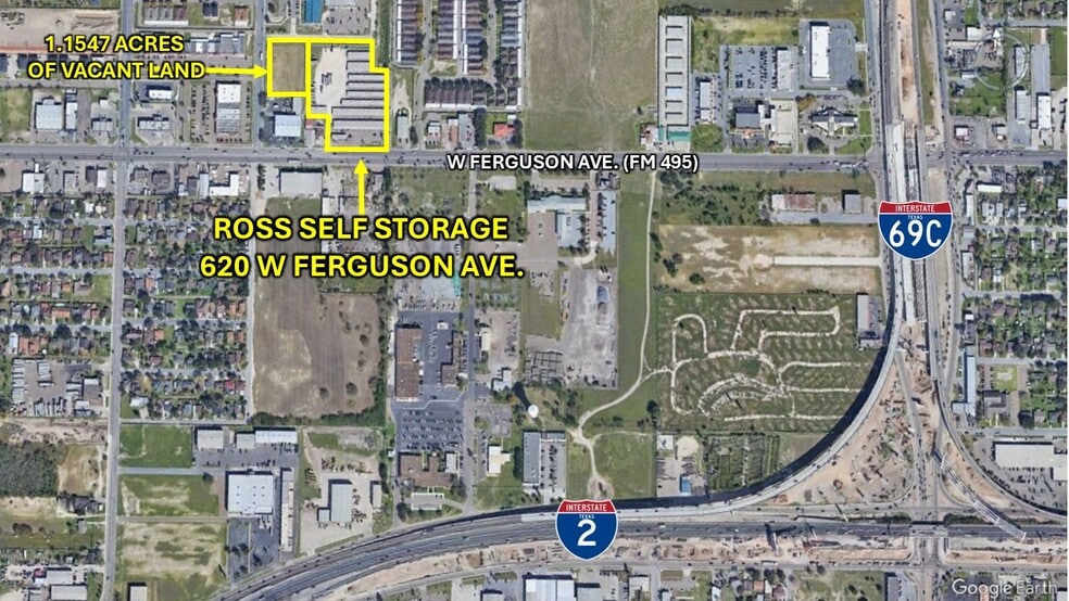 Ross Self-Storage is a 4.25-acre Self-Storage facility located at 620 W. Ferguson Avenue (A/K/A FM 495) in Pharr, TX that offers an investor or owner-operator a mix of 236 self-storage units, a 1,400 square foot (SF) stand-alone office-showroom building, 7,500 SF of “mini-retail spaces”, open yard storage, and billboard income. Approximately 1-acre of the property is undeveloped and is partially used for vehicle and trailer storage rental spaces and gives a future owner an option to expand the self-storage facility with additional buildings. An additional 1.1547 acre parcel directly west of the fenced storage facility with frontage on Hibiscus Avenue is also available with the property, which would allow for more expansion of self-storage, office-warehouse, or mixed use development utilizing the frontage on Hibiscus Ave. Combined the property totals 5.4 acres.