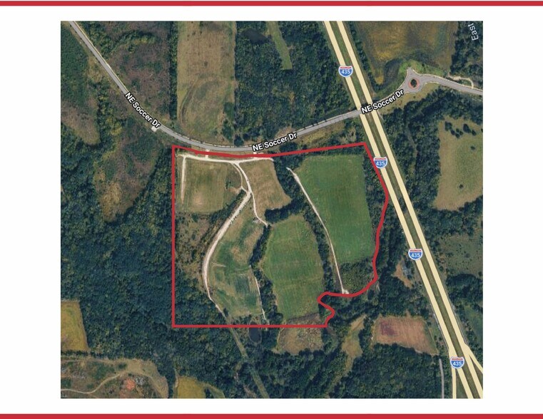 Located in the Northland area of Kansas City, Missouri, and approximately 20 minutes to downtown Kansas City. Retail shops of all kinds in the Shoal Creek retail area on 152 Highway are only 3 miles to the east. The property is approx. 20 miles and 20 minutes from the Kansas City International Airport via I-435. The property has approx. 1420 feet of frontage on the west side of I435, giving high exposure to the high traffic on I-435. Water To be brought to the site by the city of Kansas City, approx. ½ mile west on NE Soccer Rd. To be zoned for Mixed Use Development. There has been a preliminary land plan layout for 300 apartments, 68 duplex units, and 72 single family lots. 98 acres - there are approx. 43 net usable acres, on the west side of the property, that are not in the flood plain area (see Flood Plain Map).