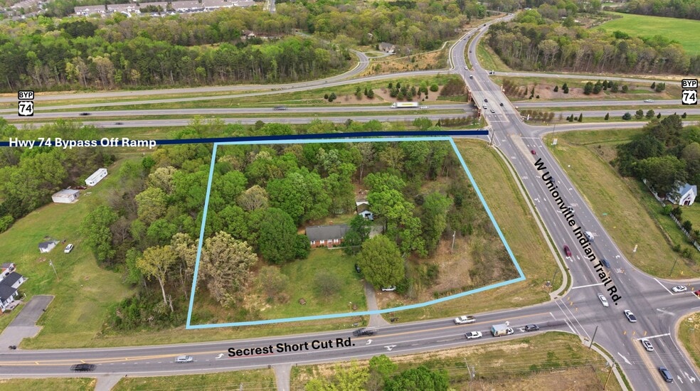 Strategically located at the corner of Secrest Shortcut Road and Unionville Indian Trail Road W at the US-74 Bypass interchange in Indian Trail, NC, this ±3.5-acre site offers exceptional visibility and access at a key signalized corner. Positioned directly at a bypass exit, the property benefits from strong traffic exposure and convenient connectivity to the greater Union County and Charlotte market opportunities.
