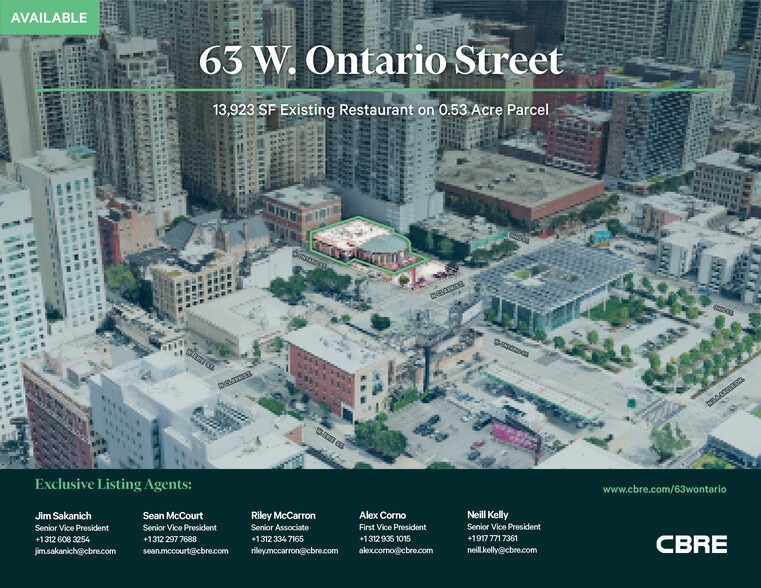 + 13,923 SF existing restaurant on 0.53 acre parcel now available after 30+ years + Vibrant retail hub with an array of dining options, attracting locals and tourists + River North is home to approximately 14,000 residents + The area is well-served by public transportation, including the CTA Brown and Purple Lines, as well as several bus routes, making it easy to access downtown and other parts of the city + Neighboring businesses: Target, Jewel Osco, Walgreens, McDonalds, and many more!