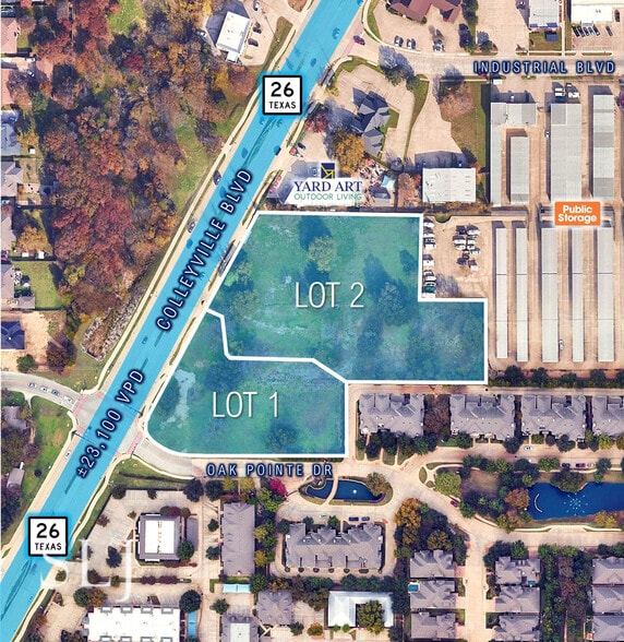 Situated along Colleyville Blvd (SH 26) offering frontage, visibility, and access along one of the area’s primary commercial corridors. Approximately ±4.8 acres across two complementary sites that may be developed together or independently. This planned development district supports commercial oriented uses on Lot 1 and light industrial oriented uses on Lot 2. Additionally, the planned development district requires high-quality, design-driven development standard. Colleyville Blvd is a mature, built-out commercial corridor with limited remaining light industrial development opportunities available within Colleyville city limits. Highly favorable one-mile demographics including $209,870 average household income and $731,963 median home value. Convenient access to major regional highways including SH 183, SH 114, and SH 121, with proximity to Dallas–Fort Worth International Airport and the broader DFW Metroplex.