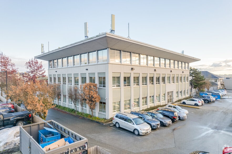Built in 1994, it is classified as a Class B building with multiple tenancy and C-1 zoning. The site includes approximately 60 parking spaces and offers features such as a security system, air conditioning, and signage options. It is located near the Willowbrook corridor with access to Highway 1 and is in proximity to the planned Willowbrook Station SkyTrain. The property is within a highly walkable area and is accessible to regional airports including Abbotsford International and Vancouver International.