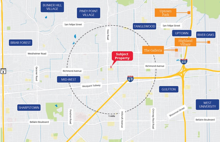 Property Highlights • Pad site available near the Greater Uptown area • Only three (3) miles west of the Galleria Mall • Parcel next to Wisdom High School with over 2,000 students • Close proximity to I-69/US-59, Westpark Tollway & I-610 • Easy access to/from major thoroughfares within the Greater Uptown area • 18,390 VPD on Richmond Ave. • 35,000 VPD on Hillcroft Ave. (S. Voss Rd.)