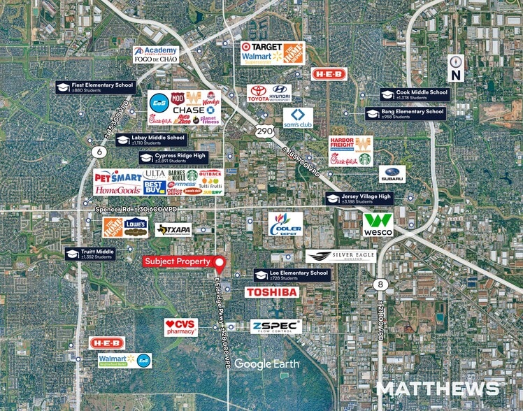 - Over 1,400 feet of frontage and ±28,000 cars per day at N Eldridge Pkwy and Little York.