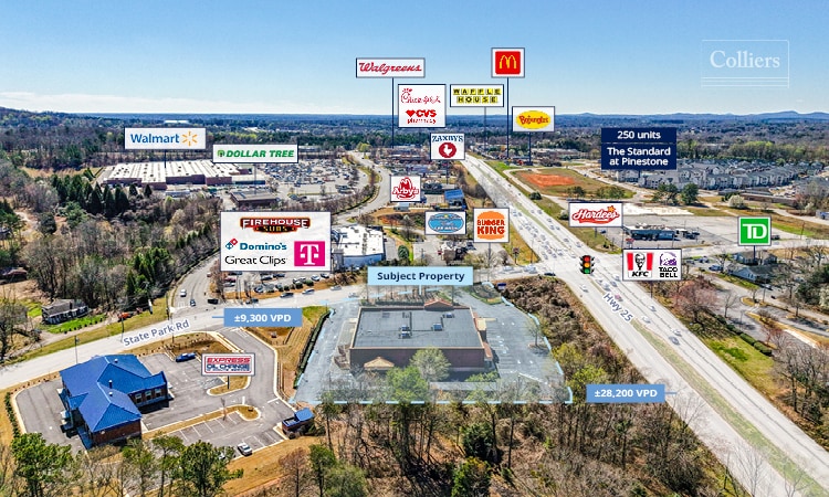 This ±13,813-square-foot opportunity is ideal for a retail/medical user seeking both visibility and accessibility in one of the Upstate’s most active communities. Positioned at the corner of State Park Road and N Hwy 25 Bypass, in the heart of the retail node, a strong local customer base and year-round visitors. Its central location and prominent street frontage make it an excellent opportunity for a user looking to establish or expand their presence in a very tight and thriving market.